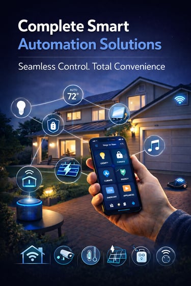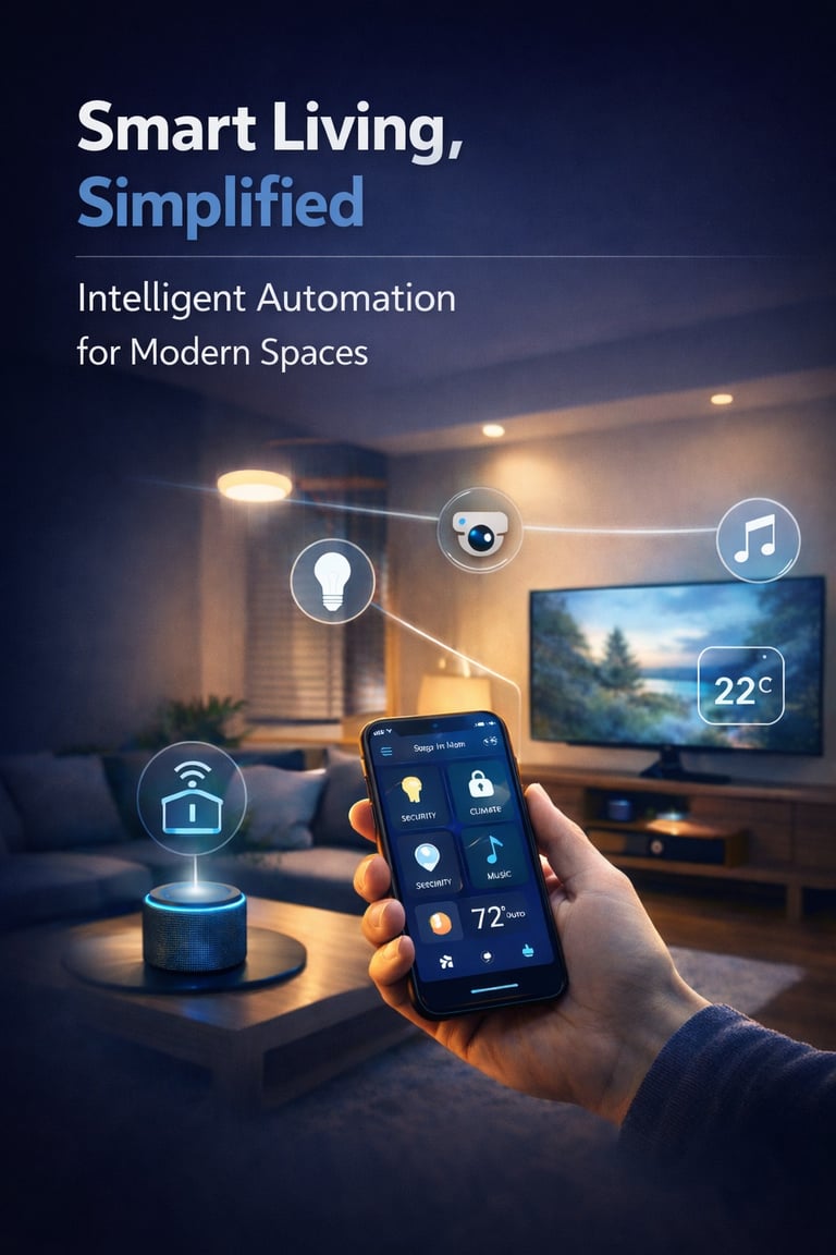 We transform everyday environments into smart, connected, and intuitive spaces. By seamlessly integrating lighting, climate control, surveillance, entertainment, and access systems, we create environments that respond intelligently to your needs. Every solution is thoughtfully engineered to enhance comfort, elevate security, improve energy efficiency, and simplify daily living.